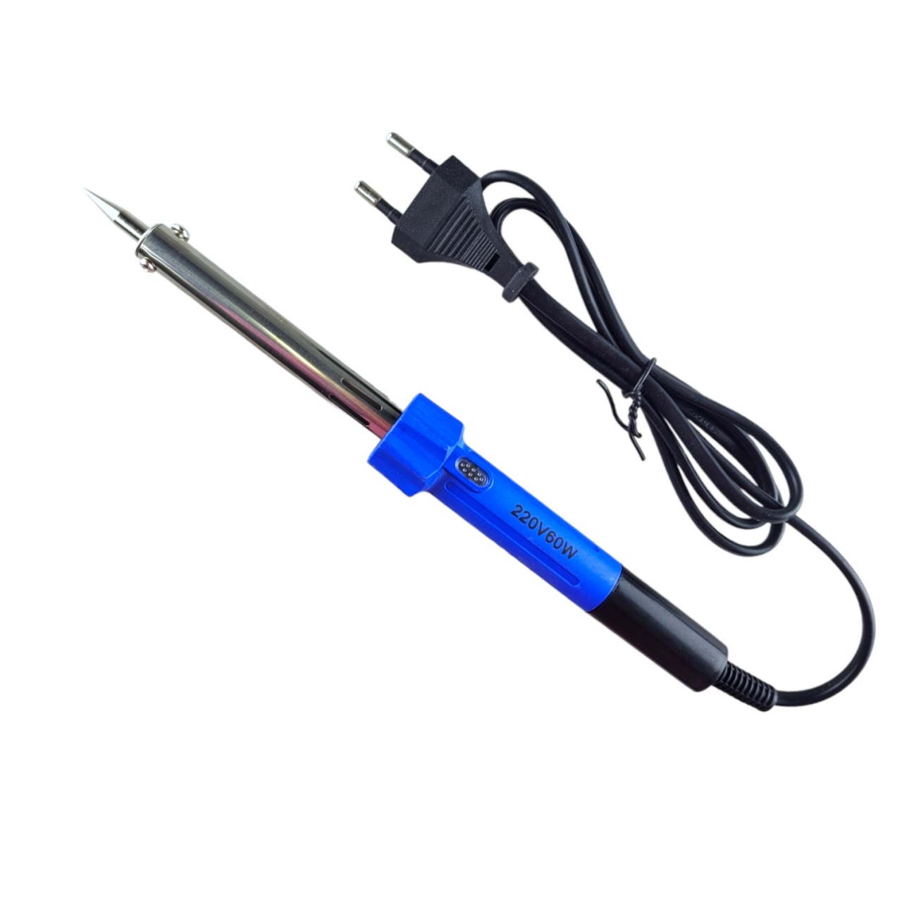Электрический паяльник 60 Вт с пластиковой рукояткой — это отличный выбор для небольшой мастерской. Надёжное стальное жало быстро нагревается и используется для соединения проводов, работы с печатными платами и другими мелкими электронными деталями.