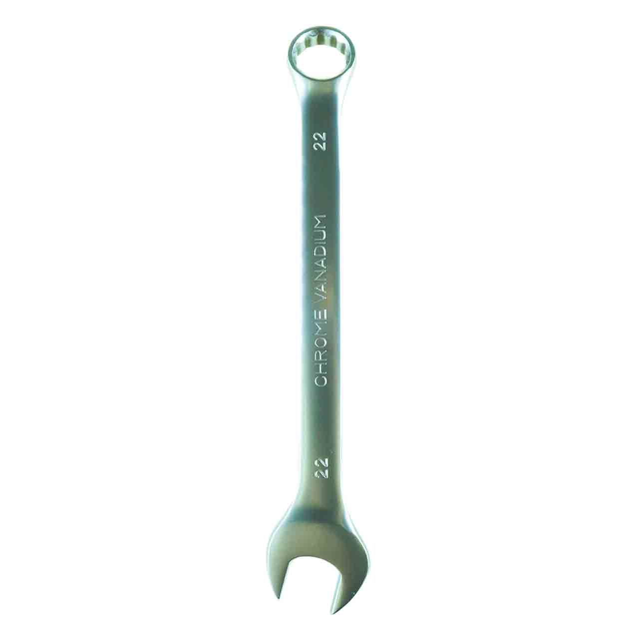 Ключ комбинированный 22 мм используется при работах с различным шестигранным крепежом. Гаечный ключ 22 мм прямой формы имеет рожковую головку и накидную наклоненную на 15 градусов.