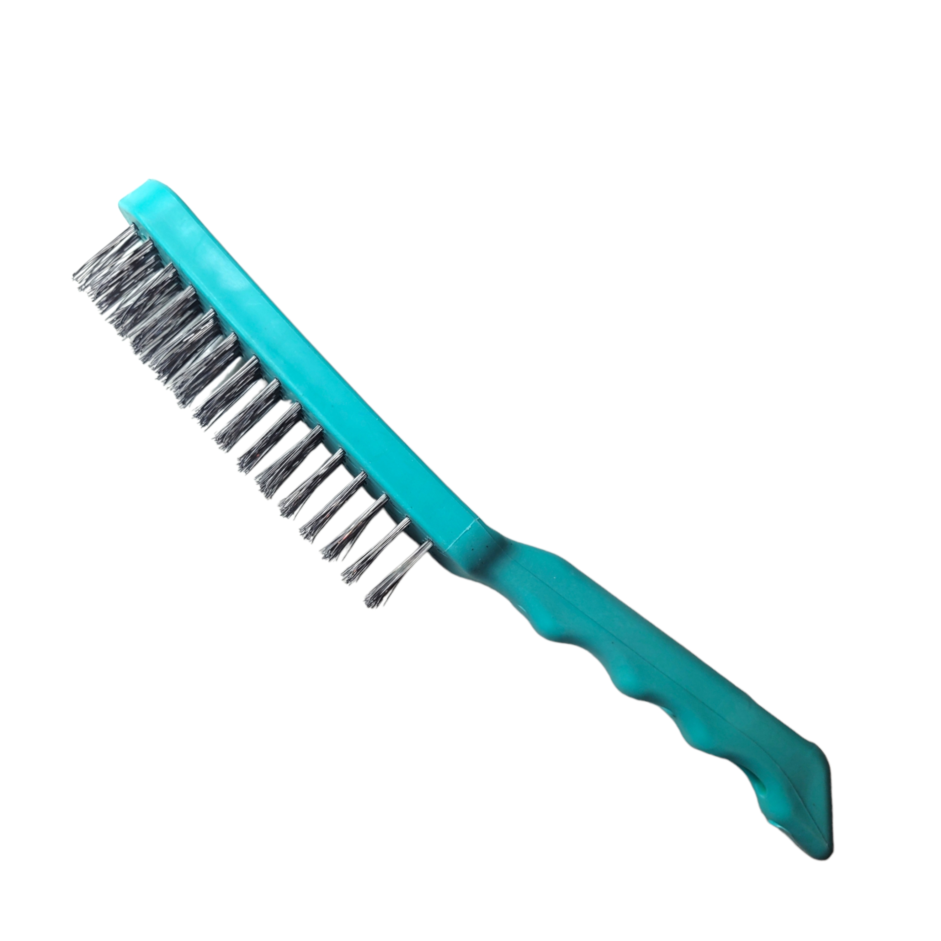 Щетка для зачистки металла в надежном пластиковом каркасе изготовлена из стальной проволоки повышенной прочности, стойкой к воздействию коррозии. Анатомическая форма ручки дополнена отверстием для хранения. Длина щетки с металлической щетиной 12 см, ширина 3 см. Общая длина 22 см. Это эффективный инструмент при снятии лакокрасочных покрытий с изделий из металла и дерева, а также при зачистке поверхностей перед и после сварки.